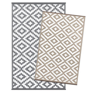 Aus recyceltem Kunststoff, absolut wetterrobust. Ist bei uns vor dem Bus ein absoluter Wohlfühlboost! Verschiedene Farben und Größen, z.B. 120 x 180cm.