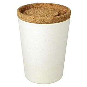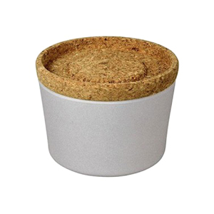 Aus Bambusfasern, Mais und Melaminharz, Deckel aus Kork. Größe Medium. Stapelbar, auch auf die größeren Dosen.